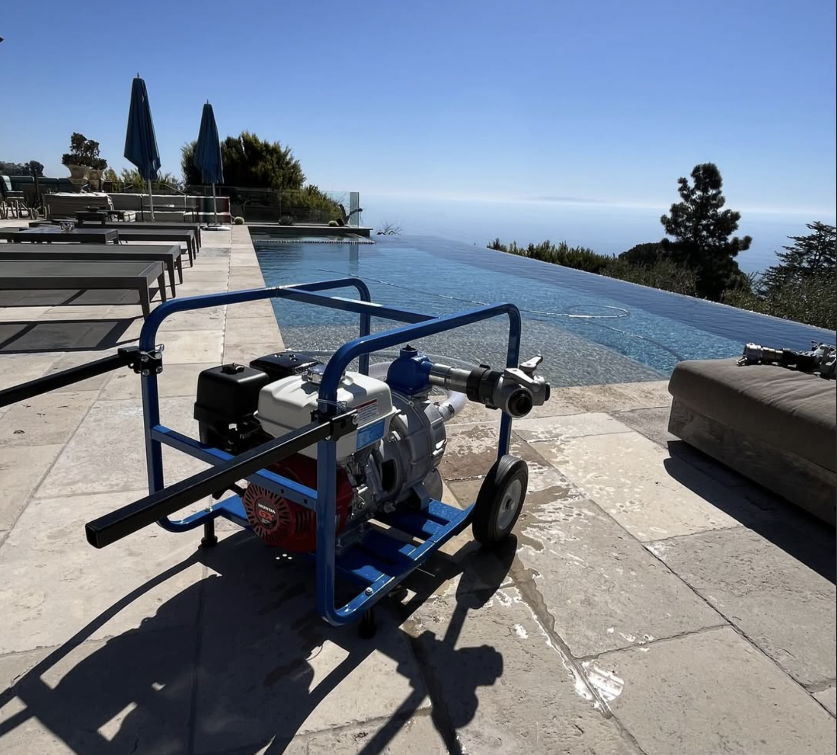 Tell us about your property, power, and water source and we’ll help you design the best pool-pump wildfire defense system to protect your home. Ask about our installation services.